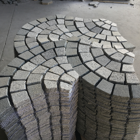 G654 Basalt Schwarz Fächer form Kopfstein pflaster Mesh Pflaster matten Granit Patio Auffahrt Fertiger Outdoor Stone